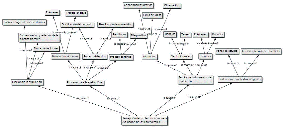 Las percepciones que el profesorado ha construido sobre la evaluación de aprendizajes de estudiantes indígenas son diversas y es complejo tratar de unificarlas. Si bien, la mayoría afirma que el plan de estudios orienta sus prácticas pedagógicas y evaluativas, la manera en que cada docente interpreta la función de la evaluación, según el currículo y según su propia experiencia, difiere, pero se pueden rescatar dos funciones principales: conocer el nivel de aprendizajes adquiridos y tomar decisiones para la solución de problemas en el aula y en la mejora de la propia práctica docente.