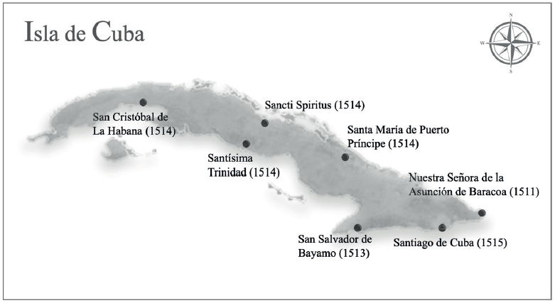 Durante el período comprendido entre 1513 y 1515, se produjo un incremento significativo en el poblamiento y la conquista castellana en Cuba. En este intervalo, se establecieron varias villas en la costa sur de la isla, como San Salvador de Bayamo (1513), Santísima Trinidad (1514), Sancti Spíritus (1514), San Cristóbal (1514) y Santiago de Cuba (1515). En contraste, en la costa septentrional, solo se fundaron Baracoa y Santa María del Puerto del Príncipe (actual Camagüey) en 1515. Las fundaciones situadas en la costa sur facilitaron las comunicaciones con La Española, Jamaica y Puerto Rico, sirviendo principalmente como centros logísticos para la constitución de armadas y el abastecimiento de alimentos y otros víveres. (Figura 1).