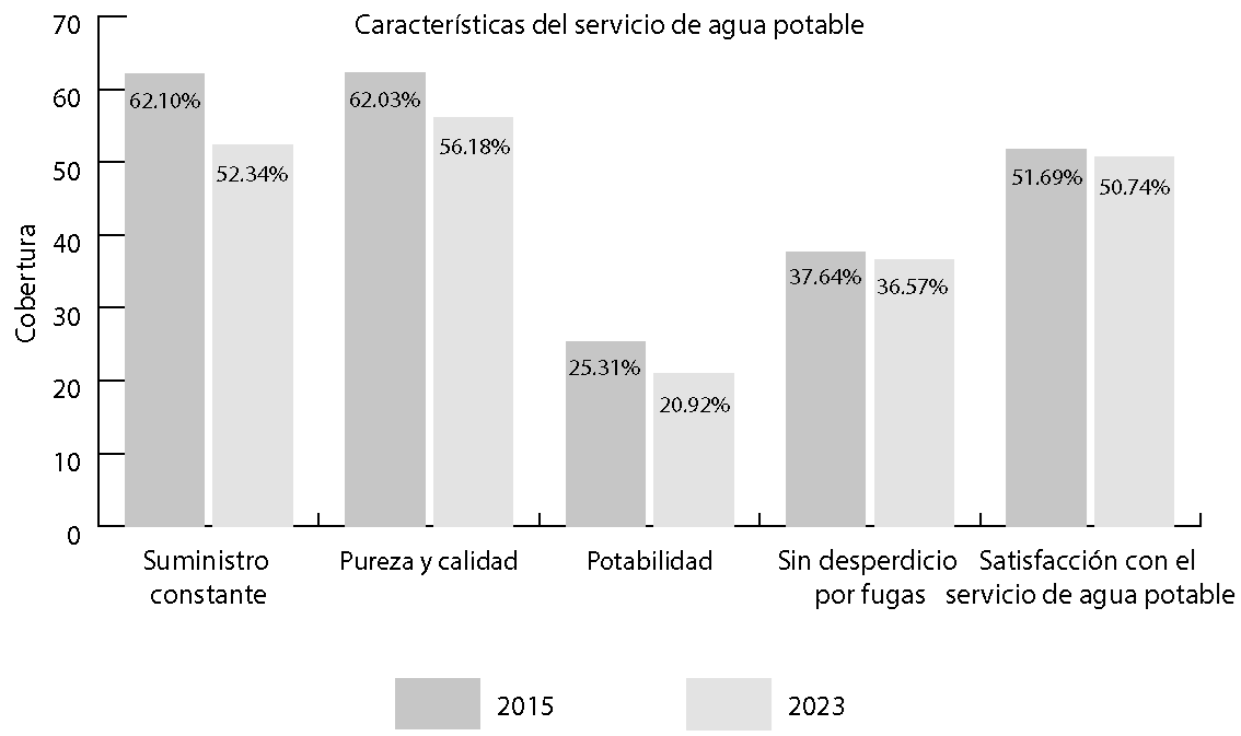 Gráfica 2 Satisfacción con el servicio público de agua potable en México, 2015 y 2023