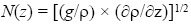 donde ρ(z) es el perfil de densidad que varía con la profundidad z y g es la aceleración de la gravedad. El valor N(z) determina la inclinación del rayo característico (la trayectoria por la cual pasa el flujo de energía de la onda interna) de la marea interna:
