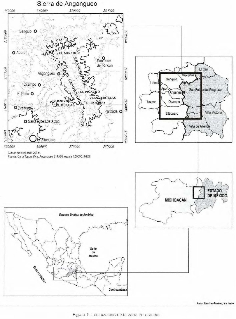 Se ha denominado Sierra de Angangueo al conjunto montañoso formado por las sierras Chincua, Rancho Grande y El Campanario y los cerros El Chivati, El Huacal, El Boludo y Las Cebollas. Esta sierra, perteneciente al Sistema Volcánico Transversal, se ubica en la parte oriental de Michoacán y occidental del Estado de México, comprendida entre las coordenadas 19° 26' y 19° 47' de latitud norte y 100° 06 y 100° 26: de longitud oeste (Figura 1).