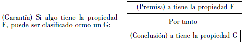 Los esquemas argumentativos son patrones de razonamiento que permiten identificar y evaluar pautas comunes y estereotipadas de argumentación en el discurso cotidiano (Vega 2011, p. 234). Los esquemas argumentativos se clasifican, siguiendo el modelo de Toulmin, según la garantía desplegada, de manera que una clasificación de los esquemas argumentativos es una clasificación de los tipos de garantía. Las garantías son reglas de inferencia que autorizan el paso de unos datos a una conclusión, y como tales son aplicables o no aplicables, y más o menos fiables (es decir, llevarán con mayor o menor frecuencia a conclusiones acertadas en determinadas circunstancias). La evaluación lógica es, en buena medida, una evaluación de las garantías, y por eso dice Toulmin que dos argumentos que se ajustan al mismo esquema argumentativo son del mismo tipo lógico. La lectura de Los usos de la argumentación evidencia que el concepto de garantía de Toulmin corresponde a un concepto comparativo, y no cualitativo, de validez: “Las garantías son de distintos tipos, y pueden conferir distintos grados de fuerza a las conclusiones que justifican” (2007, pp. 136-137).