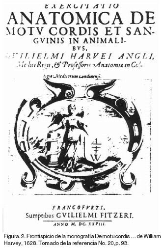 En su Exercitatio anatómica de motucordis...10 (Figura 2), inició Harvey la exposición de la doctrina circulatoria en esta forma: "Comencé a pensar si no existía un movimiento, de algún modo circular...". Según la opinión de Alexandre Koyré, él era sensible todavía al hechizo renacentista de la "circularidad". Terminó con las afirmaciones siguientes: "...es necesario concluir que la sangre en el cuerpo animal es impelida circularmente y se encuentra en movimiento incesante, que ésta es la función que ejerce el corazón mediante sus latidos y el único fin del movimiento y de la contracción cardiacos. Hechos relacionados con el paso de la sangre en los vasos ya habían sido señalados por Andrea Cesalpinoel primero en usar la palabra circulación en el sentido actual en sus Peripateticarum quaestionum librí quinqué (1571).