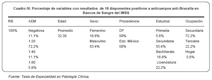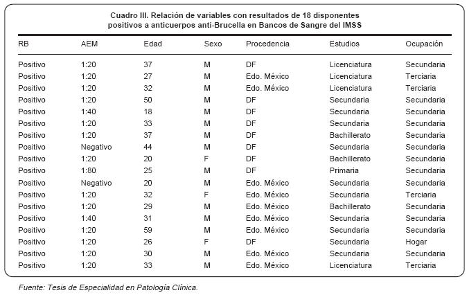 Introduction: to determine seroprevalence for Brucella sp. in blood donors, a serologic study was carried out at three blood banks of the Instituto Mexicano del Seguro Social (IMSS).