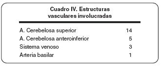 En el cuadro IV se enumeran las estructuras vasculares que mas frecuentemente ocasionan neuralgia por compresión.