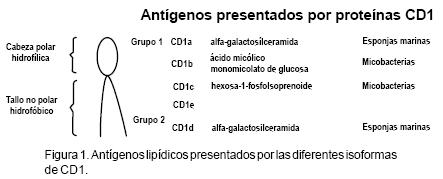 El objetivo de esta revisión es analizar el estado actual de nuestro conocimiento sobre las moléculas de superficie celular involucradas en la presentación de antígenos glicolipídicos, denominadas familia CD1. Estas proteínas constituyen la tercera clase de moléculas presentadoras de antígeno. Las proteínas CD 1 controlan diversas funciones inmunes importantes en la defensa del hospedero contra las infecciones microbianas. En años recientes estas proteínas han sido involucradas en la generación de una respuesta inmune celular contra Mycobacterium tuberculosis. Aquí, nosotros analizaremos aspectos relevantes acerca de las proteínas CD 1 y las células T específicas para antígenos glicolipídicos.