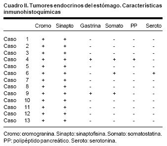 Tumores endocrinos del estómago. Análisis de 13 casos