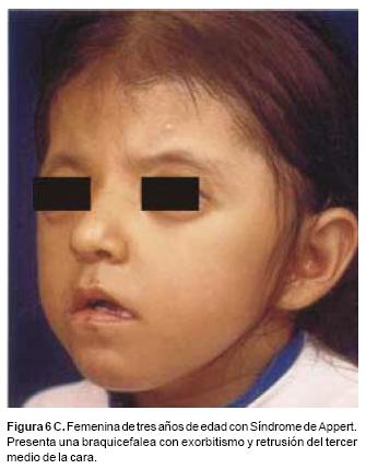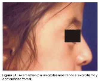 Las disostosis craneofaciales como el síndrome de Apert, de Pfeiffer, enfermedad de Crouzon, etc. se caracterizan por alteraciones tanto en la cara como en la forma del cráneo. Estas deformidades son producidas por el cierre temprano de las suturas de la base del cráneo, la frontoesfenoidal, la esfeno occipital, etc. y de acuerdo a las suturas afectadas, estos niños al crecer desarrollan diferentes tipos de formas del cráneo (escafocefalia, turricefalia, braquicefalia, etc.) por la presión que el cerebro en crecimiento produce en los sitios donde las suturas craneanas no están fusionadas. En muchos casos también se ve afectado el crecimiento de las órbitas, manifestado por exorbitismo y del maxilar superior con diferentes grados de retrusión del tercio medio de la cara. Las malformaciones pueden variar de graves a mínimas. En estos pacientes las paredes, el techo y el piso orbitario son cortos, lo que se traduce en un disminuido volumen de la cavidad que no puede acomodar el globo ocular. En casos extremos de múltiples sinostosis en la base del cráneo como el síndrome de Kleeblattschädel, el globo ocular puede situarse por entero fuera de la órbita y exteriorizarse por enfrente de la hendidura palpebral. El exorbitismo por sí solo representa un grave problema estético y en muchos casos los párpados no son capaces del cierre palpebral produciendo exposiciones del globo ocular con las subsecuentes ulceraciones corneales y pérdida de la visión.