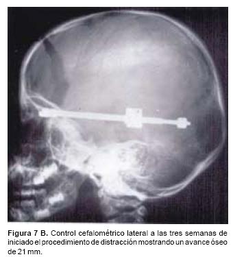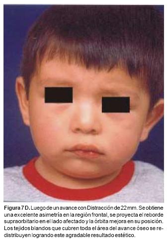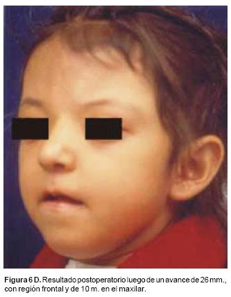 Comparando la experiencia de múltiples autores con la serie clínica que aquí se presenta, es evidente que la combinación de osteotomía y distracción ofrece grandes ventajas sobre las técnicas clásicas. Probablemente una de las mayores ventajas sea que el cirujano al efectuar en forma progresiva los avances óseos, sea capaz de vencer la resistencia de los tejidos blandos, expandiéndolos simultáneamente y lograr avances de la frente, las órbitas, malarescigoma y maxilar de mayores dimensiones, más estables, que dependen del hueso neoformado en áreas críticas de la estructura esquelética craneofacial.