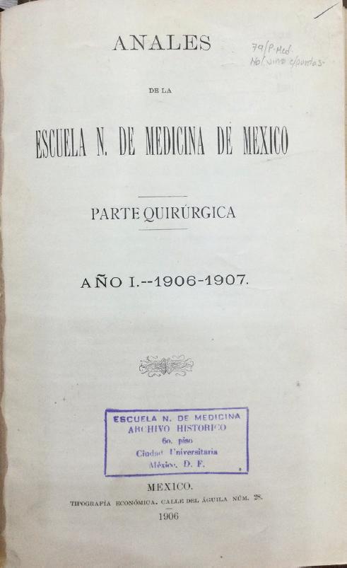 Para comprender la trascendencia de Anales de la Escuela Nacional de Medicina (AENM)1 es necesario señalar que se edita en la época porfiriana, caracterizada por su apoyo a la ciencia y al progreso en general, que da importancia al asociacionismo y a las publicaciones periódicas como medio de actualización continua. Por su parte, al interior de la Escuela Nacional de Medicina existía la inquietud de contar con material didáctico para su momento y la posteridad, como fueron los AENM, cuya primera época se integra por seis tomos, cuatro subtitulados Parte Médica (1904-1905, 1905-1906, 1907 y 1908) y dos Parte Quirúrgica (1906-1907 y 1907-1908). Una segunda época de la publicación, que dejaremos para otro estudio, apareció a partir de 1911 bajo la gerencia del Dr. Rafael Norma.