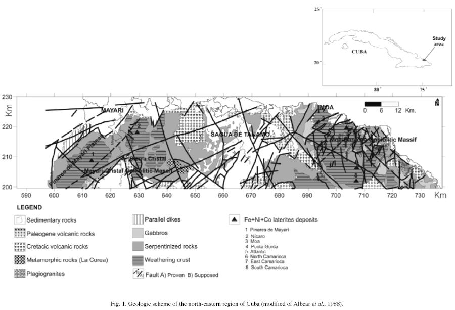 The region studied is located on the northeastern sector of Cuba, where important Fe+Ni laterites and chromite deposits outcrop (Figure 1).