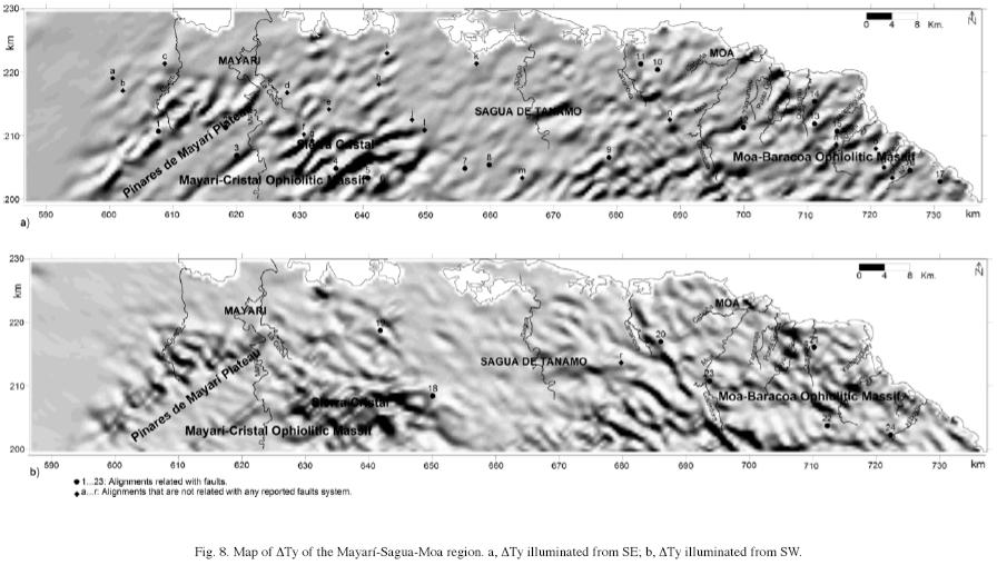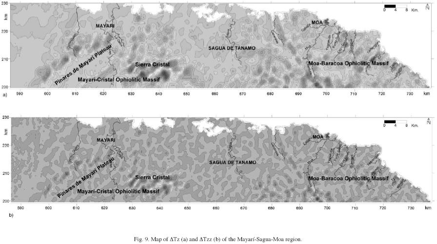 We thank the National Office of Mineral Resources of Cuba for facilitating access to the main geophysical survey carried out in the oriental region of Cuba; the direction of the Institute of Geology and Paleontology, particularly the Department of Geophysics, for facilitating the aeromagnetic data used in this work; the doctors José Rodríguez, Alina Rodríguez, Joaquín Proenza, Jesus Blanco, Antonio Rodríguez and Ramón González Caraballo, for suggestions that allowed to improve this work.