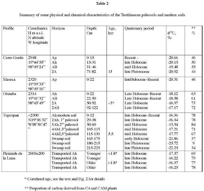 Earlier attempts to reconstruct paleoenvironment in the Teotihuacan valley were based on paleopedological records (McClung et al., 2003; GamaCastro et al., 2004). The objective of the present work is to document paleoenvironmental changes in the Teotihuacan valley using carbon stable isotope composition of organic matter in paleosols.