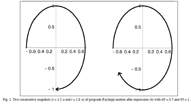 Rayleigh waves are vector waves with vertical and horizontal components that feature elliptical particle motion. Retrograde particle motion is wellestablished for propagation of the fundamental mode over a homogeneous halfspace (Aki and Richards, 2000). In the case of an inhomogeneous halfspace retrograde or prograde motion is possible, depending on the frequency range. Early papers dealing with this subject include Giese (1957) and Kisslinger (1959). Both found evidence of prograde Rayleigh motion in soils. Giese considered prograde and retrograde wave groups for a model consisting of a layer on a rigid halfspace and obtained Poisson's ratio in the layer from the frequency where particle motion changes from prograde to retrograde. A recent treatment can be found in Tanimoto and Rivera (2005), who provide the eigenfunctions of Rayleigh waves and their ratios numerically for a layer over a halfspace. They found that Rayleighwave particle motion can become prograde near the surface when the geological section contains a sedimentary layer with extremely slow seismic velocities. Prograde Rayleighwave motion in a layered halfspace was also obtained in theory by Wuttke (2005).