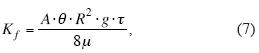 Comparing formulas (6), (7) and (3) we conclude that in formula (6) Kf is proportional to d2, in formula (7) it is proportional to R2. θ.