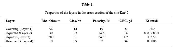As an example of this application, we present the site Km42, near Cárdenas, Tabasco. The crosssection includes four layers: superficial covering (layer 1), loam (layer 2), sandy aquifer (layer 3), and clayrich basement (layer 4) (Figure 9).