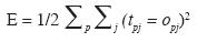 where opj be the activation of output unit uj in response to pattern p and tpj is the target output value for unit uj. After the error on each pattern is computed, each weight is adjusted in proportion to the calculated error gradient backpropagated from the outputs to the inputs. The changes in the weights reduce the overall error in the network.