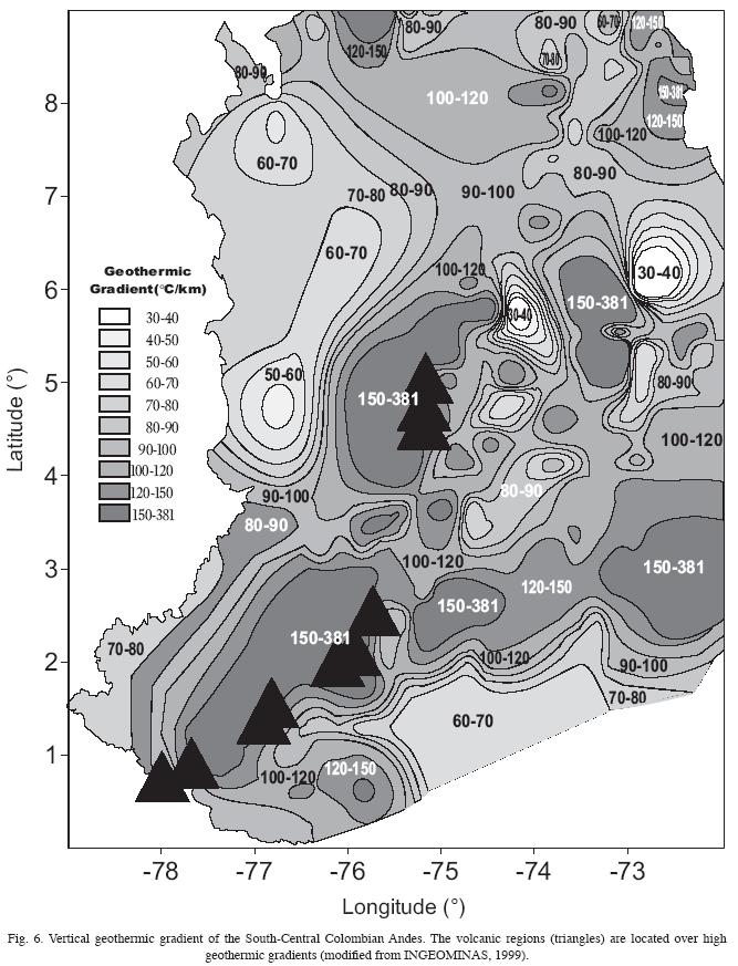 INGEOMINAS, 1999. Map of Geothermic anomalies in Colombia. Internal report, Instituto de Investigación e Información Geocientífica, Minero Ambiental y Nuclear, INGEOMINAS. Bogotá, Colombia. [ Links ]