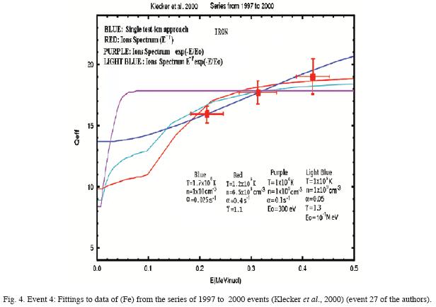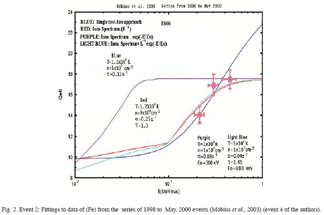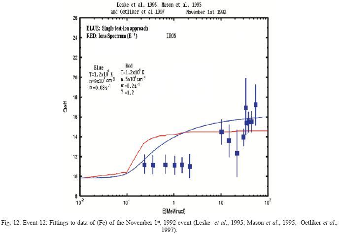 For our analysis we have chosen data of 17 events among the many published in the literature, some of which correspond to the same series of solar events. Event 1, 2, 3 (Fe), from series of 1998 to May 2000 (Möbius et al., 2003), events 4, 5, 6 (Fe), from series of 19972000 events (Klecker et al., 2000), event 7 (Fe), from the May 1, 1998 (Klecker et al., 2005), events 8 (Si) from OctoberNovember 1992 (Mazur et al., 1999), events 9,10, (Fe, Si respectively) event 11 November 6th 1997 (Tylka et al., 2001, event 12 (Fe) from November 1st , 1992 event (Leske et al., 1995; Mason et al., 1995, Oetliker et al., 1997), events 1317 (Fe) from November 6th, 1997, September 30th 1998, November 6th, 1998, June 26th, 1999, July 15th 2000 respectively (Popecki, 2006).