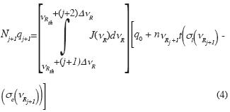 Where j = 0, 1, 2,..., i2. It can be seen from (5) that for j = 0, our starting velocity is νRth whereas for j = (i 2), our final velocity is νRmax. Each one of these values, allows us to construct the graphic that expresses the evolution of the average charge state as the energy increases. Also, it is well known that as the number of intervals increases, so does the precision of our results. The charge state value <qeff0,2> is retrofed when calculating <qeff2,4> and so on in order to preserve the evolving nature of the equation 1.
