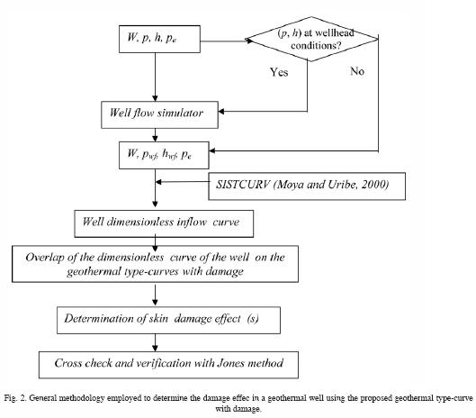 The proposed general methodology to determine skin damage in a well through the use of the geothermal typecurves with damage effects given by Eqs. (10) and (13) is shown schematically in Fig. 2: