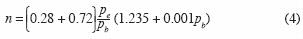 The exponent n of Eq. (2) is a function of the reservoir pressure pe and the bubble point pressure (pb), and is given by: