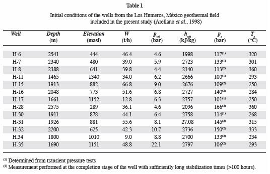 The static pressure data were obtained from transient pressure tests or measurements carried out at the completion stage of the well (TorresRodríguez, 1995) for sufficiently long stabilization times (greater than 100 hours). The static temperatures of the wells were determined using the Horner (1951) method (Arellano et al., 1998). The output or discharge measurements correspond to the initial exploitation stage of the wells.