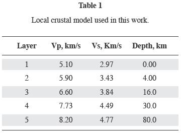 SEISAN Sismological Seismic Analysis (Havskov and Ottemøller, 1999), Hypocenter program and the local onedimensional velocity structure (Protti & Schwartz, 1994) in Table 1 were used to relocate the earthquakes.