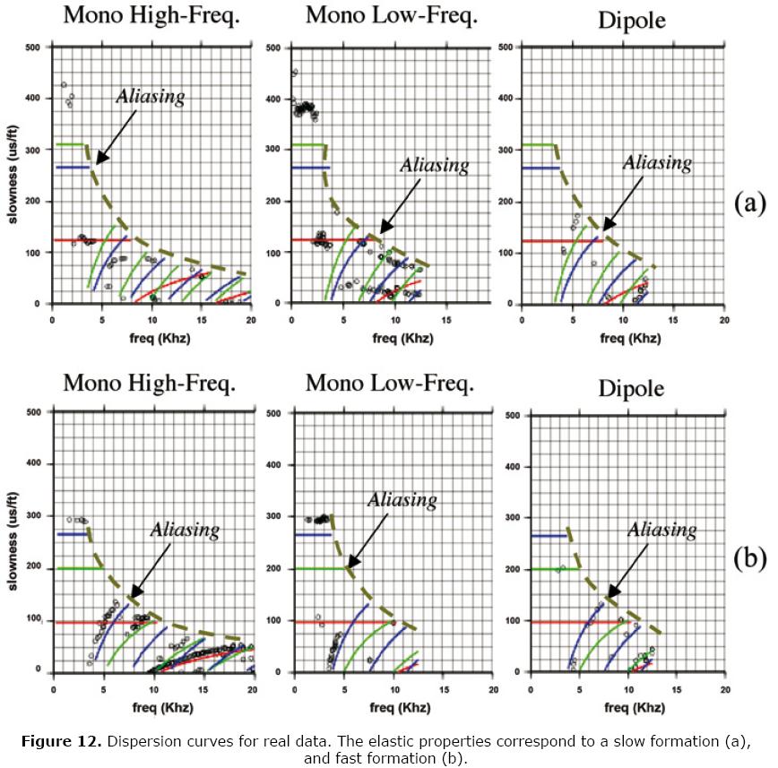 Similarly, the dipole results (Figure 11 topright) display Pwave propagation porous modes varying from compressionslowness at low frequencies up to mudslowness near 12 kHz. As seen, these modes exhibit a wide range of frequency content.