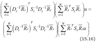 i = DiRi. Here, Di =diag{δi} is a diagonal matrix defining a partition of unity. Substituting S and M1 in Eq. (15.8), we obtain