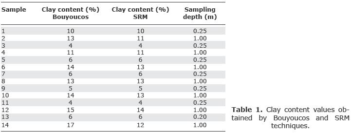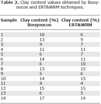 Table 1 shows the clay content determined by both methods, showing a strong similarity between them.