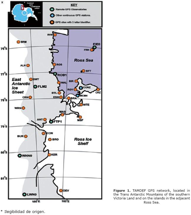 The TAMDEF Network is a GPS array deployed on bedrock, consisting of 25-campaign sites, 6-quasi-continuous sites and 2-continuous sites (see Figure 1), located in the Trans Antarctic Mountains of the southern Victoria Land and on the islands in the adjacent Ross Sea. TAMDEF is the OSU (Ohio State University) and USGS (United States Geological Survey) joint project sponsored by the NSF (National Science Foundation), initiated in 1996 with the primary objective to measure vertical and horizontal crustal deformation (http://www.geology.ohio-state.edu/TerryWilson/research_gps.htm). At the present time, some of the TAMDEF sites are part of the related POLar Earth observing NETwork (POLENET) which is expected to be an ambitious international project to understand geophysical aspects at very remote high-latitude such as the Antarctic continent (http://www.polenet.org/).