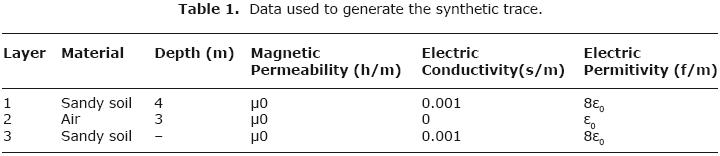 Table (1) presents the model used to generate the synthetic trace (Figure 2). The synthetic trace model (Figure 2a) is represented in a sampling window of 60 ns, that would be obtained by an antenna of 270 MHz with 512 samples per record.