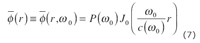 where P(ω0) is the power spectral density at frequency ω0 and δ( ) is Dirac's function. In this case, the azimuthal average of the spatial correlation function can be written as