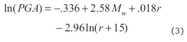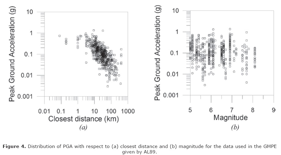 Various studies done by Joshi and Patel (1957), Joshi et al. (2001), Joshi (1997, 1998, 2001), Kumar et al. (1998) regarding modeling of strong motion data for the Himalayan earthquakes shows that the GMPE of Abrahamson and Litehiser (1989) is suitable to predict PGA parameters in this region. This relation which is hereby referred in the text as AL89, is given as: