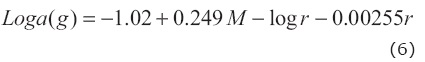 In this expression, 'r' is the hypocentral distance, 'M' is the magnitude of earthquake and a(g) is PGA in g. This relation is restricted to the data of Western North American shallow earthquakes with depth less than 20 km and magnitude more than 5.0 and includes 183 records. The distribution of hypocentral distance and magnitude with respect to PGA is shown in Figure 5.
