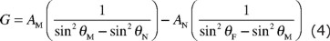 Where I is the Intercept and is the Gradient. According to equation 2 and in case of near offsets, i.e. 10°< θ < 20°, the amplitudes shall be renamed as AM(θ) = I + G sin2 θM. In case of far offsets, i.e. 20°< θ < 35°, the amplitudes shall be AF(θ) = I + G sin2 θF.