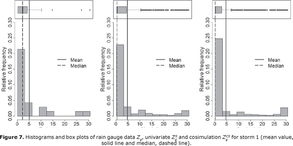 Spatial stochastic simulations using the sequential Gaussian method reproduce adequately data statistics (minimum, maximum, mean value, median, variance, histogram, variogram model, etc.) in both univariate and bivariate cases. Simulationcanbeanideal tool tomodel thespatial distribution of rainfall.