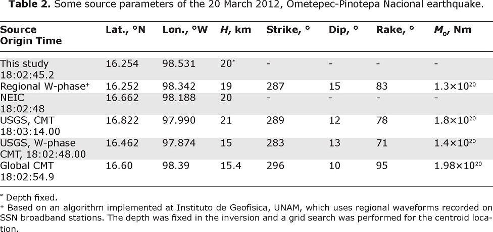 We thank Civil Protection authorities of the State of Oaxaca, Centro de Instrumentación y Registros Sísmicos (CIRES) and Centro Nacional de Prevención de Desastres (CENAPRED) for making available to us the recordings of the mainshock. We are indebted to H. Kanamori for sharing his unpublished results with us and for many fruitful discussions on the 2012 earthquake during his visit to UNAM in August 2012. We appreciate comments and suggestions by H. Kanamori, L. Astiz, R. Castro and C. Mendoza who were reviewers of the manuscript. The research was supported by Conacyt project 82599, and PAPIIT-UNAM projects IN112411 and IN111411-2.
