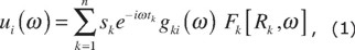 where n is the number of subfaults; tk, the rupture time (time elapsed from origin time to the initial rupture for each subfault); Sk, the average displacement for kth subfault; gki(ω), the displacement transfer function for unitary slip in the kth subfault recorded at the ith station; and Fk [Rk, ω], the source time function depending on rise time Rk. Following Hernandez et al. (2001), we chose