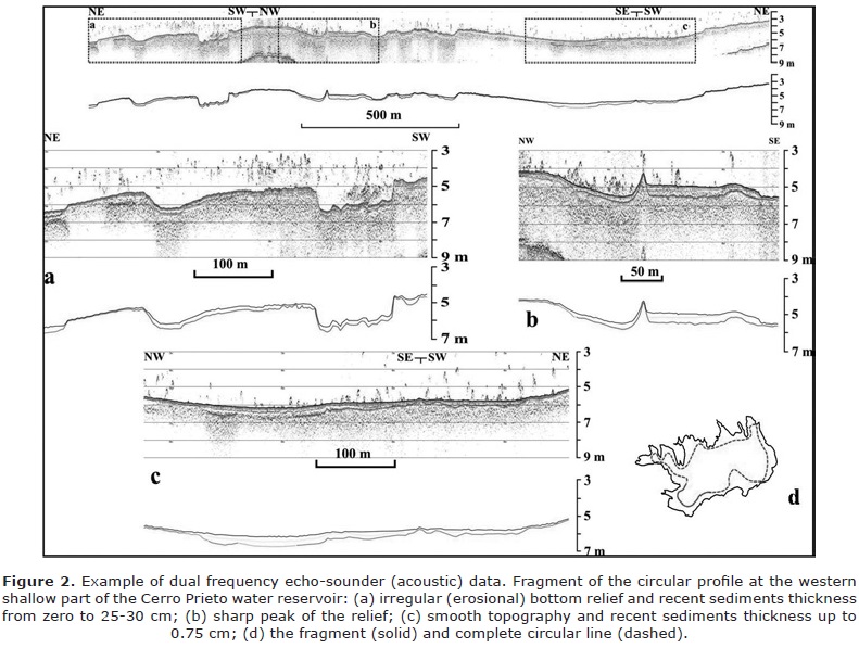 Key words: non-linear acoustic method, NE Mexico, water reservoir, bottom topography, water capacity, recent sedimentation.