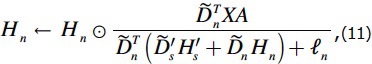 represents the approximation error to minimize. The meaning of dictionary matrix D, sparse code matrix H and rank K depends on the specific application and signal representation. To estimate the parameters of NMF, (i.e. the factor matrices D and H), we need to minimize the measure of similarity (or cost function C) between the data matrix X and the estimated model matrix