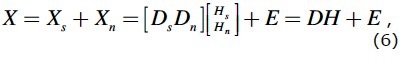 Assuming the additivity of sources, the dictionary of the mixed signal of Eq. 1 can be seen as the horizontal concatenation of the individual source dictionaries. Moreover, the sparse code of the mixed signal can be seen as the vertical concatenation of the individual source sparse codes:
