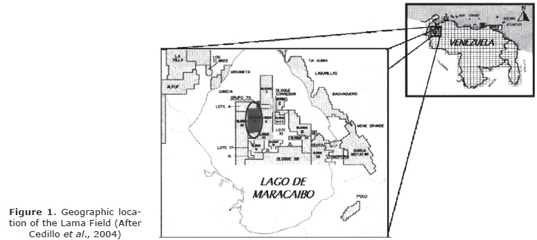 The study area is located in the central part of the Maracaibo Basin, specifically at the Lama Field, southeast of Block IX, Venezuela (see Figure 1).