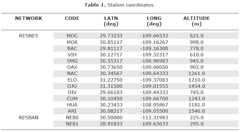The installation and operation of the Seismic Network of Northeastern Sonora (RESNES) has been possible thanks to the financial support of the Mexican National Council for Science and Technology (CONACYT) (projects G33102-T and 59216). Carlos Huerta provided logistic support from 2008 to 2012. I am also grateful for the technical assistance given by Luis Inzunza, Antonio Mendoza, Arturo Pérez Vertti and Ignacio Méndez. I am thankful for the participation of César Jacques-Ayala and Oscar Romero (Instituto de Geología, Universidad Nacional Autónoma de México) during the initial part of the project. I am grateful to Max Suter for his useful suggestions and comments during the preparation of the manuscript. The author also thanks the anonymous reviewers, Associate Editor Dr. Xyoli Pérez Campos and Editor-inChief Dr. Cinna Lomnitz, who helped me to improve the manuscript. Elizabeth Morales Hernández provided efficient communication.