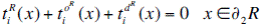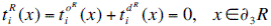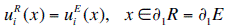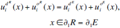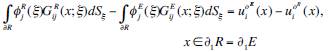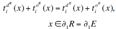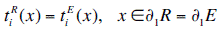 On the other hand, the interface zone between region R and E exhibit continuity of displacements and tractions that can be established as:
