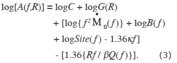 In equations above, Ṁ0 (ƒ) is the moment rate spectrum so that Ṁ0 ( ƒ )→M0 (the seismic moment) as ƒ → 0, R = hypocentral distance, Rθf = average radiation pattern (0.55), F = free surface amplification (2.0), P takes into account the partitioning of energy in the two horizontal components (1 / √2 ), b = shearwave velocity at the source (taken here as 3.5 km/s), r = density in the focal region (assumed 2.85 g/cm3), and Q( ƒ ) = quality factor, which includes both anelastic absorption and scattering. The attenuation in the nearsurface layer and the finite bandwidth of the observed spectrum imposed by the sampling rate are accounted by the parameter k (Singh et al., 1982; Anderson and Hough, 1984) and/ or the Butterworth filter, B( f ). Following Boore (1983), we take B( ƒ ) = (1.0 + (ƒ / ƒm)8)-0.5. We will assume that κ is independent of R. Site (ƒ) in Equation (1) is the local site effect. We take the geometrical spreading term, B( R ), in Equation (1) as 1 / R for R≤ 100 km and 1 / (100R)0.5 for R> 100 km. Taking logarithm of Equation (1) yields: