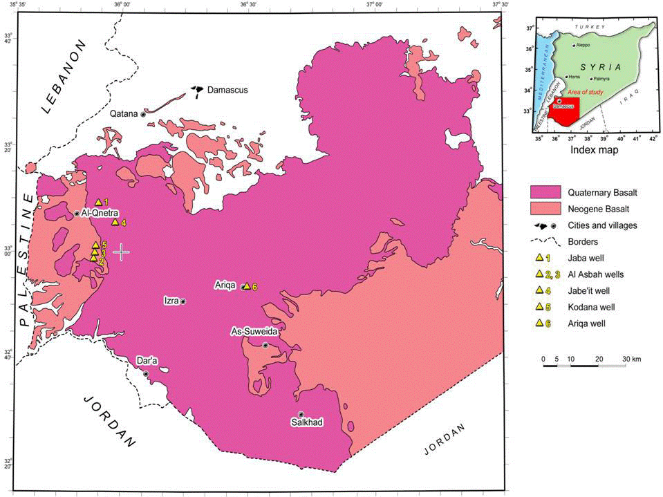 Nuclear and electrical borehole logging techniques were used to log four drilled boreholes of depths varying between 190 and 300m in Southern Syria; their locations are shown in the Figure 1. A Digital Robertson geology borehole logging station was used for executing and acquiring the borehole logging records.