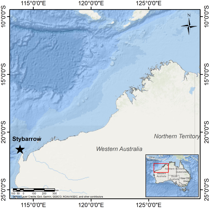 The Barrow Sub-basin is geologically an elongated marine basin trending NNE to SSW, which forms part of the North Carnarvon Basin in Northwest Australia. The Barrow Sub-basin is a deep syncline graben that forms a depocentre of about 10 km of predominantly Mesozoic and Cenozoic sequences, which are flanked to the east and west by shallow faulted terraces containing more than 5 km of Paleozoic strata from Cenozoic (Ementon et al., 2004).