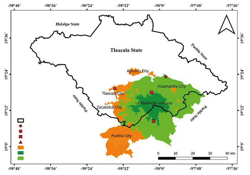 | Tlaxcala (Tla) | 98°14'48" | 19°19'29" | 2232 | Synoptic meteorological automatic | Urban (area of Tlaxcala City) |